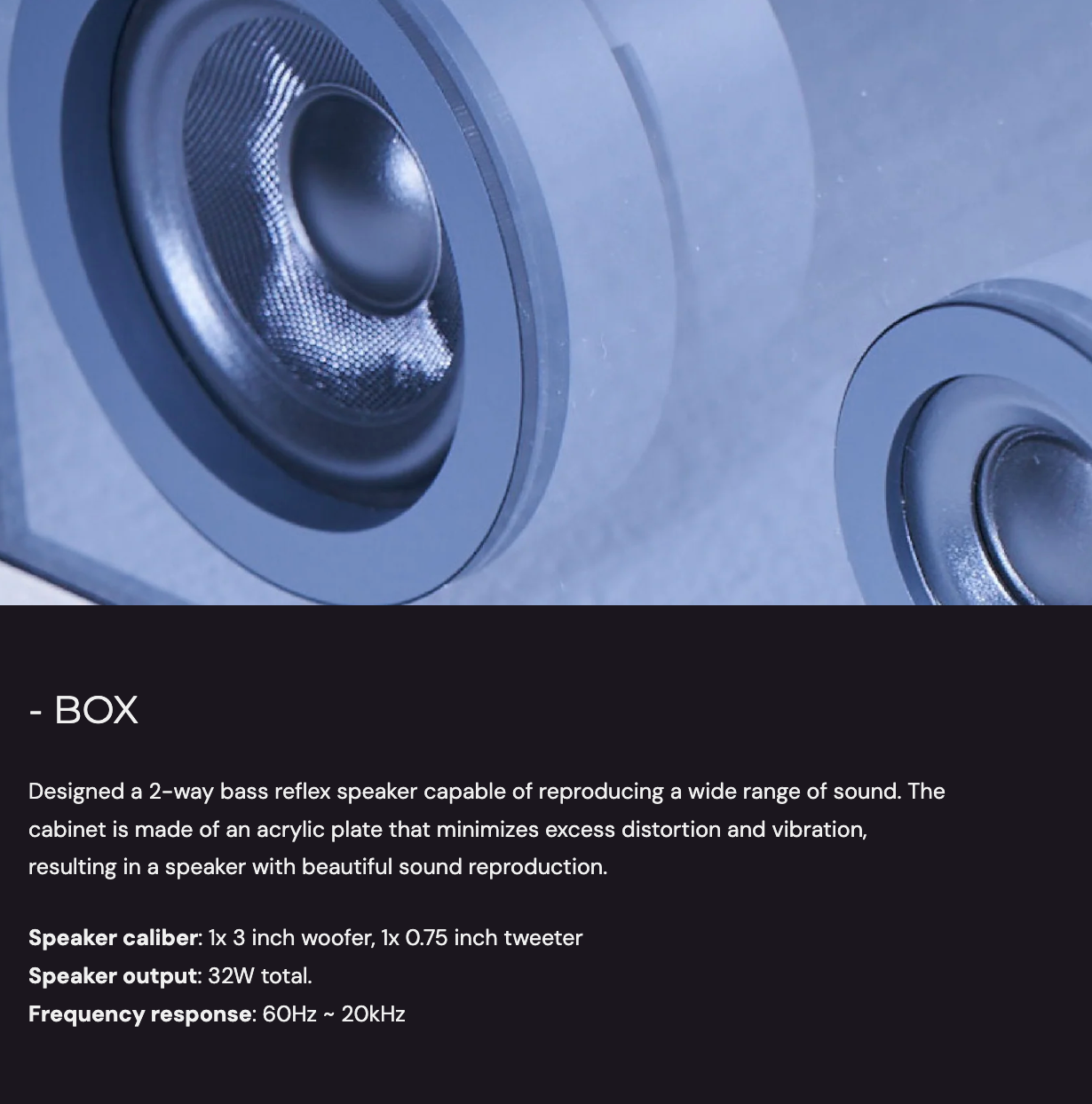 This speaker feels like something straight out of the future. The lyrics literally dance across the glass, and the way the light moves with the music is insane. The audio is so clean and rich that it makes every song hit harder. It’s not just a speaker, it’s like having a living piece of art in my room 🖤